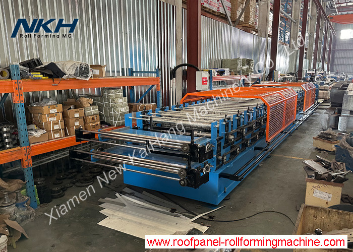 Eine Doppelblatt-Rollformmaschine besteht in der Regel aus einem Entwickler, zwei Eintrittszufuhrleitern mit optionalem Eintrittsscheren, zwei Rollformsystemen,ein Schneidrahmen mit zwei Schneidmaschinen (ein hydraulisches Pressen ist vorhanden, solange diese zweistufige Rollenformmaschine zur Herstellung von Metallglasdachfliesen ausgelegt ist)Eine hydraulische De-Coiler und eine automatische Stapelmaschine sind für diese Doppelschicht-Rollformmaschine nach Maßgabe der Anforderungen optional.Für europäische Kunden, gibt es Sicherheitsdeckel sowie ein CE-Kennzeichen auf der Maschine.
